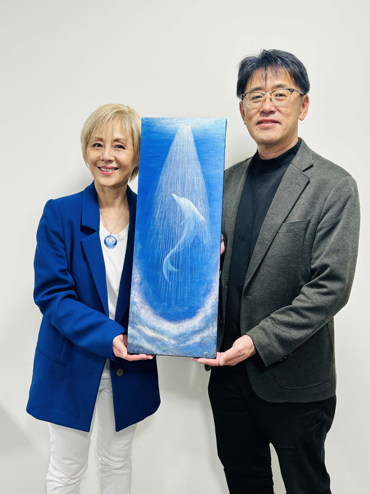 この度、寄贈されたのは、2023年発表の癒しと幸運の使者とも云われるイル力を描いた“蒼き光“シリーズの5作品中の1つになります。