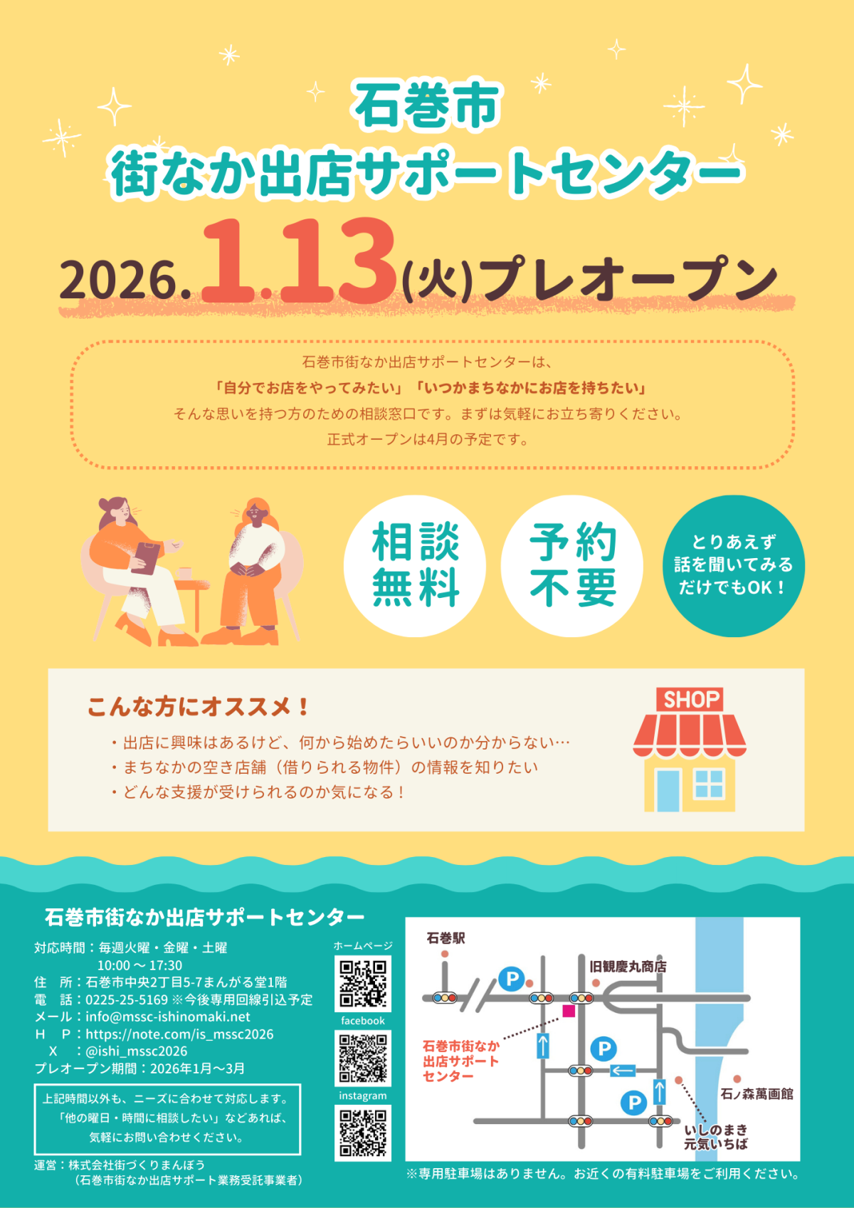 「石巻市街なか出店サポートセンター」がプレオープンしました!