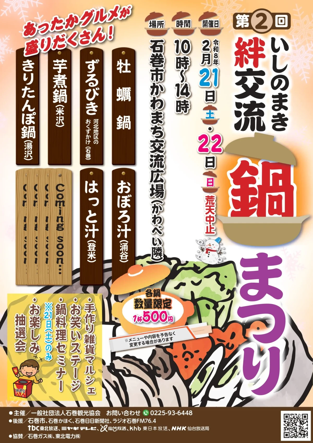 2/21(土)-22(日)「第2回 いしのまき絆交流 鍋まつり」が開催されます