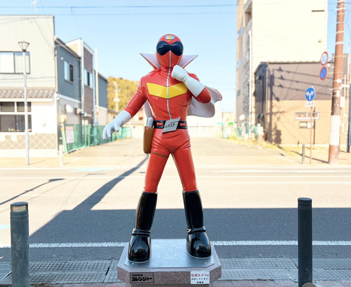 元々アカレンジャーは立町大通りにある旧石巻商工会議所前に設置されていました。東日本大震災では奇跡的に消失を免れましたが、近隣の建物解体に伴って取り外され、再設置は見送りに。時を経て、まちなかのハード整備も終わりを迎えた2026年3月、場所を立町大通りから中央一大通りに変え、再設置することになりました。約8年ぶりの帰還となります。おかえりなさい、アカレンジャー!
